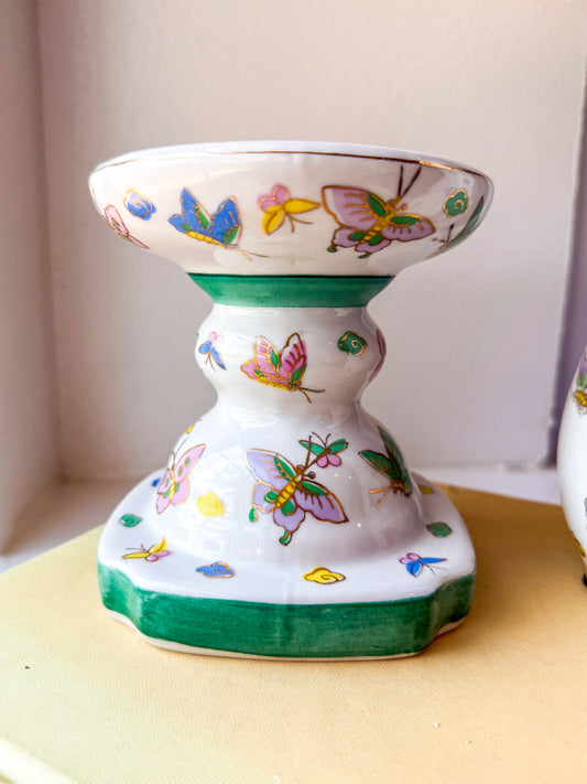 Vintage Chinese Butterfly Vase + Candle Holder