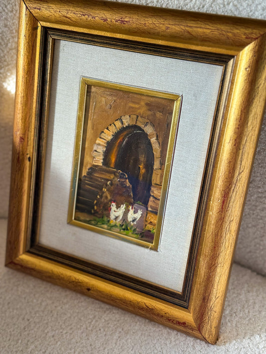 Chickens - Framed Oil Painting