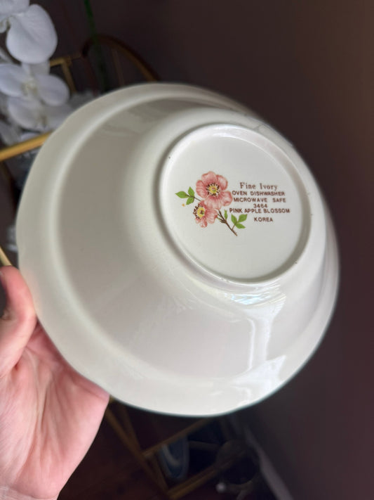 Vintage Fine Ivory Pink Apple Blossom Serving Bowl