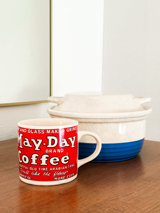 Blue Lidded Casserole Dish & May-Day Coffee Mug